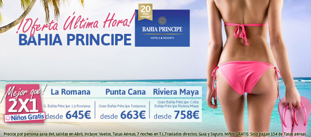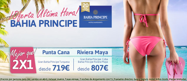 Los hoteles Bahía Príncipe vuelven a ofrecernos sus espectaculares instalaciones a los mejores precios. Nueva oferta 2×1 que no puedes dejar escapar. Aprovecha esta promoción …