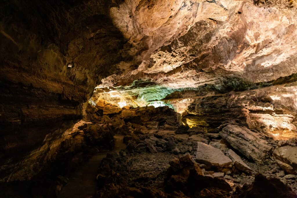 Las Cuevas de los Verdes se produjeron tras la erupción del volcán Corona y la visita se hace siguiendo a un guía. Se llama así porque aquí es donde la familia Verdes guardaba su ganado. Durante el recorrido te encontrarás con algunas zonas estrechas para pasar y otras en las que tendrás que agacharte.