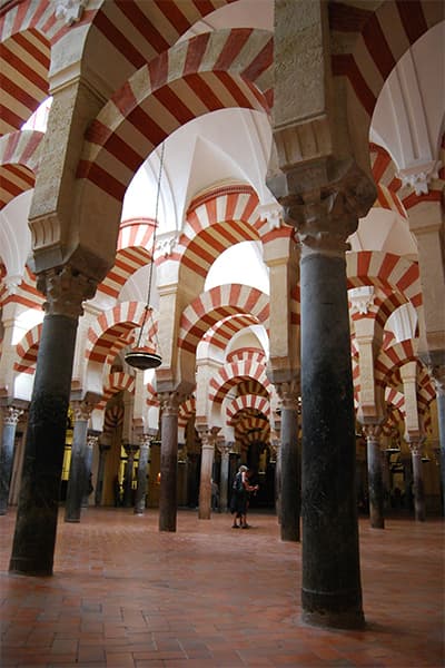 Si hablamos de lo mucho que hay que ver en Córdoba, es obligado empezar esta pequeña guía de viaje con su monumento más icónico: la Mezquita de Córdoba. Considerada como una de las maravillas culturales de España, este asombroso complejo, construido en el lugar donde antes hubo una iglesia visigótica, data del año 784. A partir de 1236, el recinto empezó a utilizarse para el culto católico, una práctica que ha tenido continuidad hasta nuestros días. A partir de esa fecha, se levantaron varias capillas laterales. El acceso se efectúa por el patio de los Naranjos, donde los fieles musulmanes realizaban sus abluciones antes de la oración. A tu llegada, fíjate en las fuentes y en la impresionante cuadrícula de 98 naranjos. En los lados noroeste y este del patio, hay galerías porticadas con unos magníficos techos artesonados originales. En el lado sur, se despliegan 17 arcos de herradura que conducen a la mezquita. Ya en el interior del edificio, te aguarda un impactante bosque de 850 columnas y arcos de herradura, construidos con piedra y ladrillo de dos tonalidades. Tampoco hay que olvidarse del mihrab o ábside, embellecido con una hermosa caligrafía dorada. Desde 1984, esta mezquita es Patrimonio de la Humanidad.