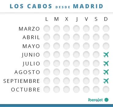 También es relevante saber cuándo viajar a Los Cabos, prestando atención a varios factores cruciales comoel clima o el precio. Los visitantes suelen viajar a Los Cabos a principios de la primavera o durante el invierno, pero debes saber que en esta época los precios son más altos. Tanto igual sucede durante el verano, cuando hace más calor y Los Cabos están más llenos. Otoño es la época en la que encontrarás menos visitantes, pero existe más riesgo de lluvia.
